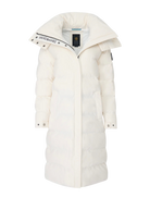 The Haven Long Puffer is finished with premium details including gunmetal components and Lampo zips featuring unique engraved Sandbanks branding. The placket features a statement Sandbanks embroidery along the edge of the oversized collar.