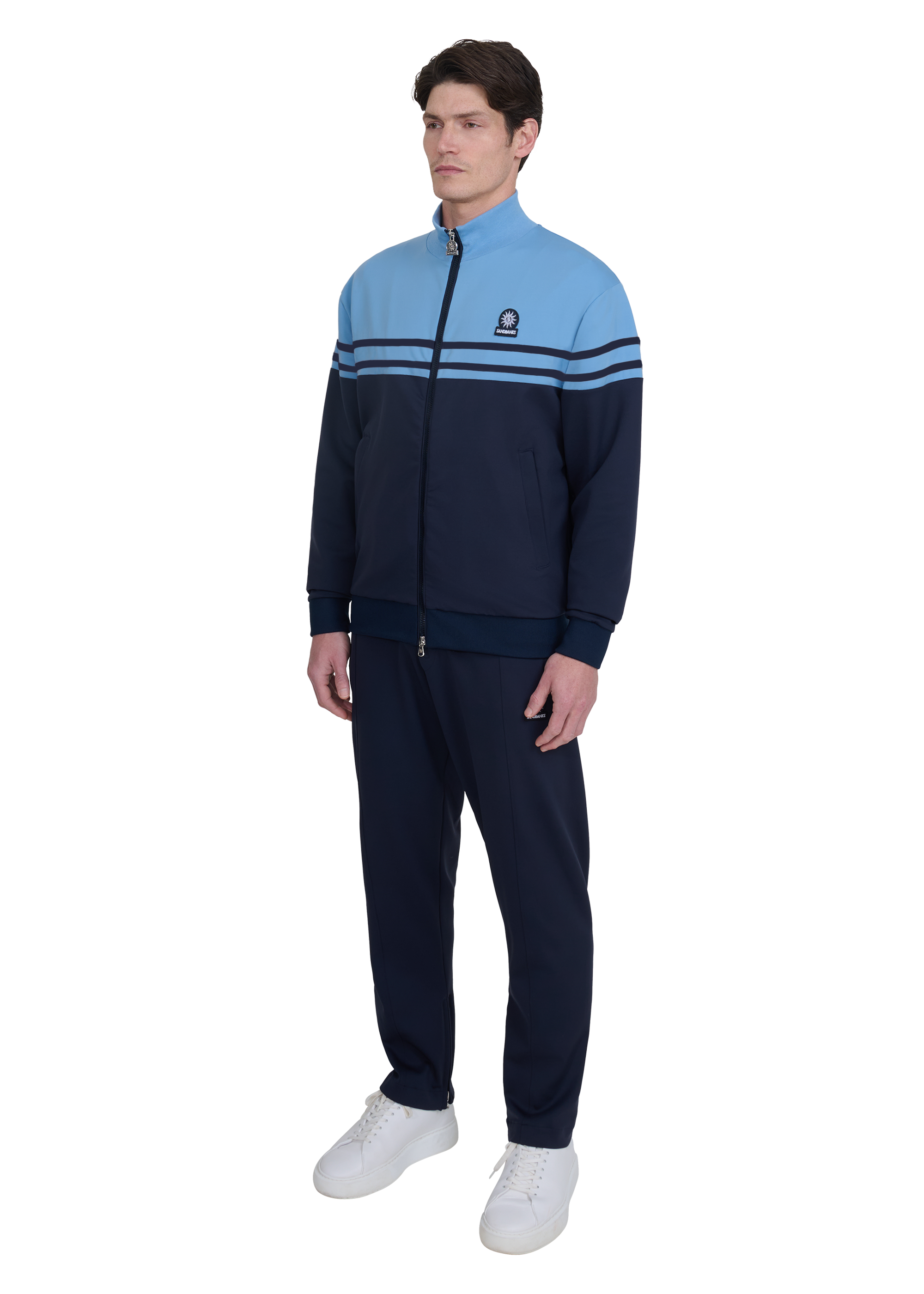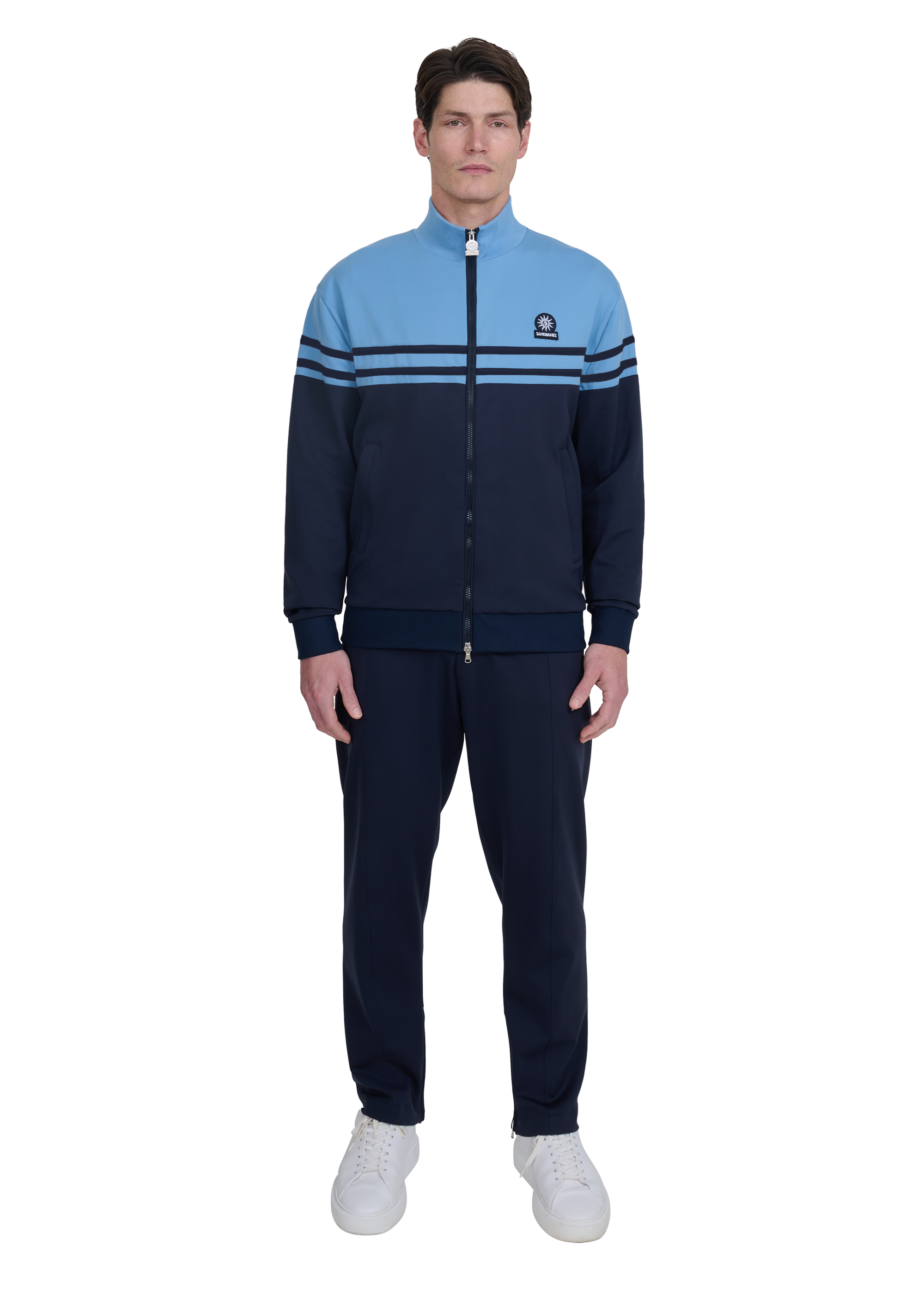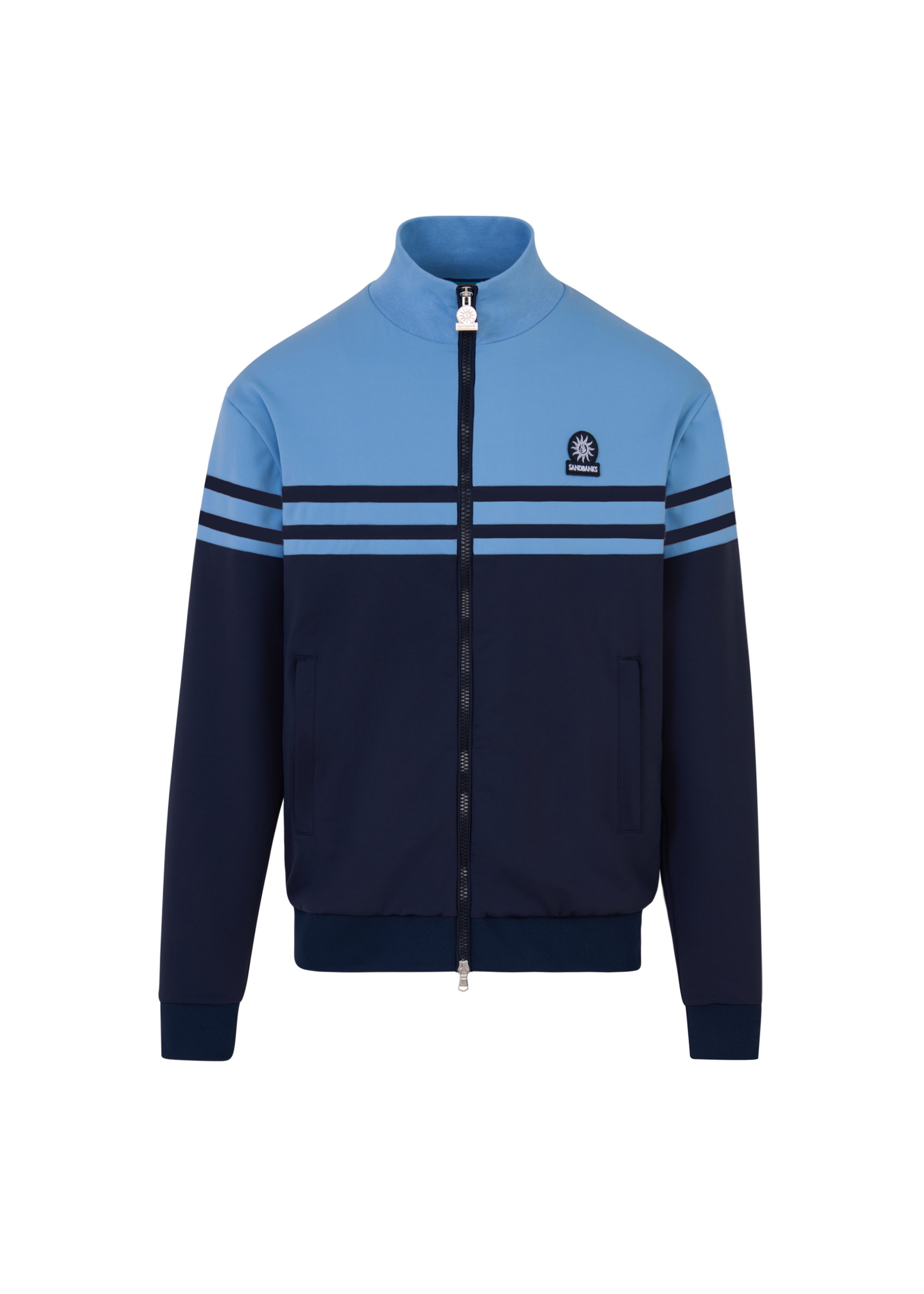 The ribbed funnel neck, cuffs and hem provide structure and balance, while a high-shine silver zip with dual-direction functionality introduces a technical finish. Discreet side entry pockets and a tonal Sandbanks badge complete the design with a subtle, signature finish.