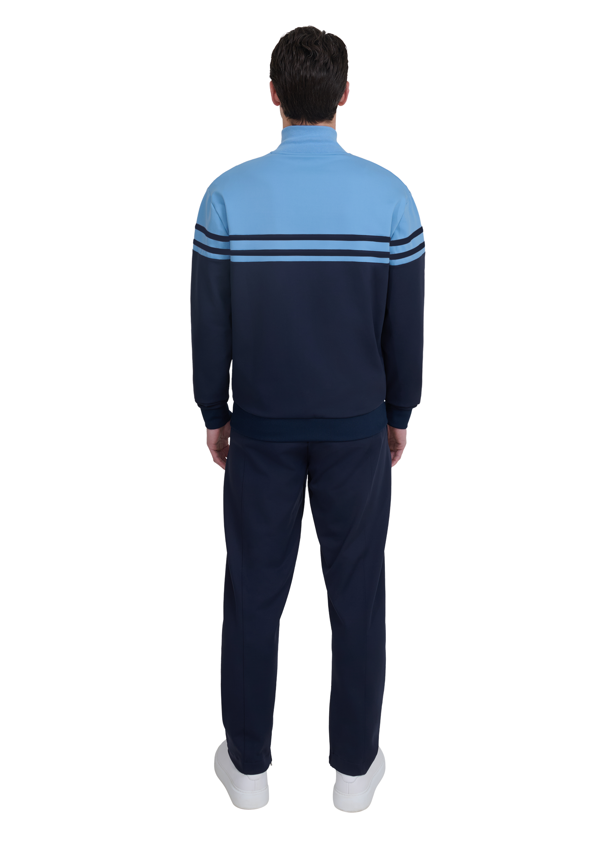 Drawing on retro athletic inspiration, the Contrast Stripe Appliqué Track Jacket is defined by its clean construction and elevated detailing. Precision-cut appliqué stripe panels create a bold create contrast across the chest, bringing a graphic edge to a streamlined silhouette.