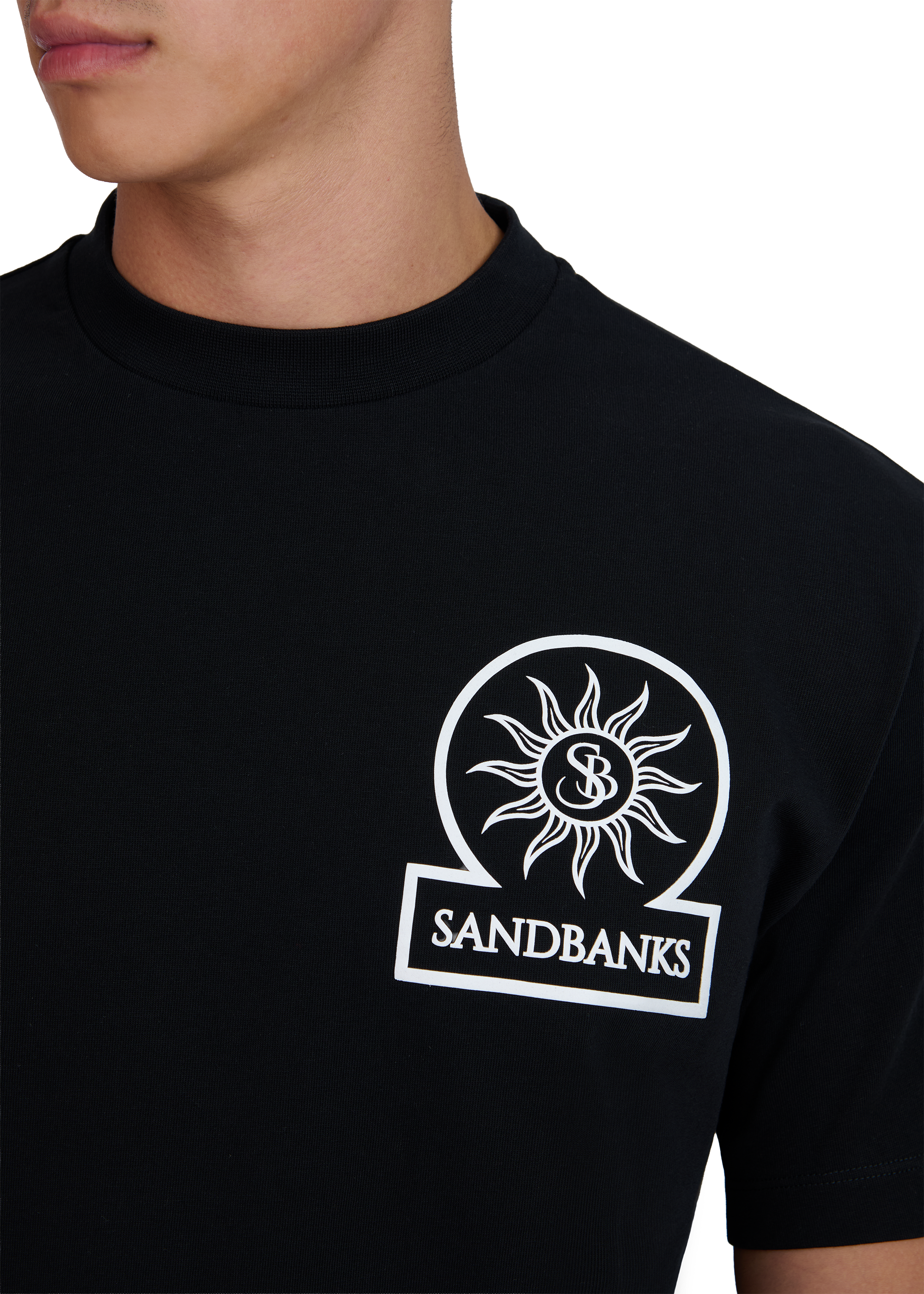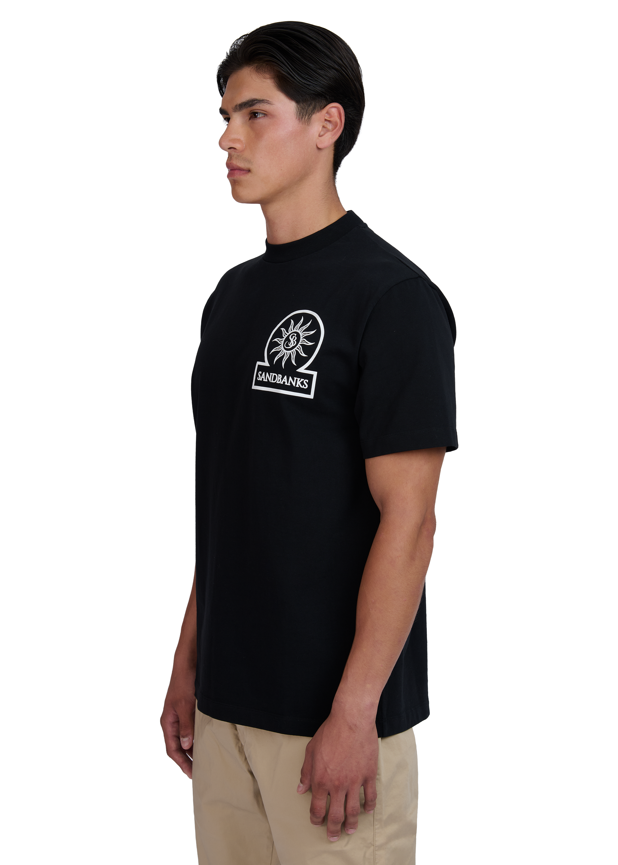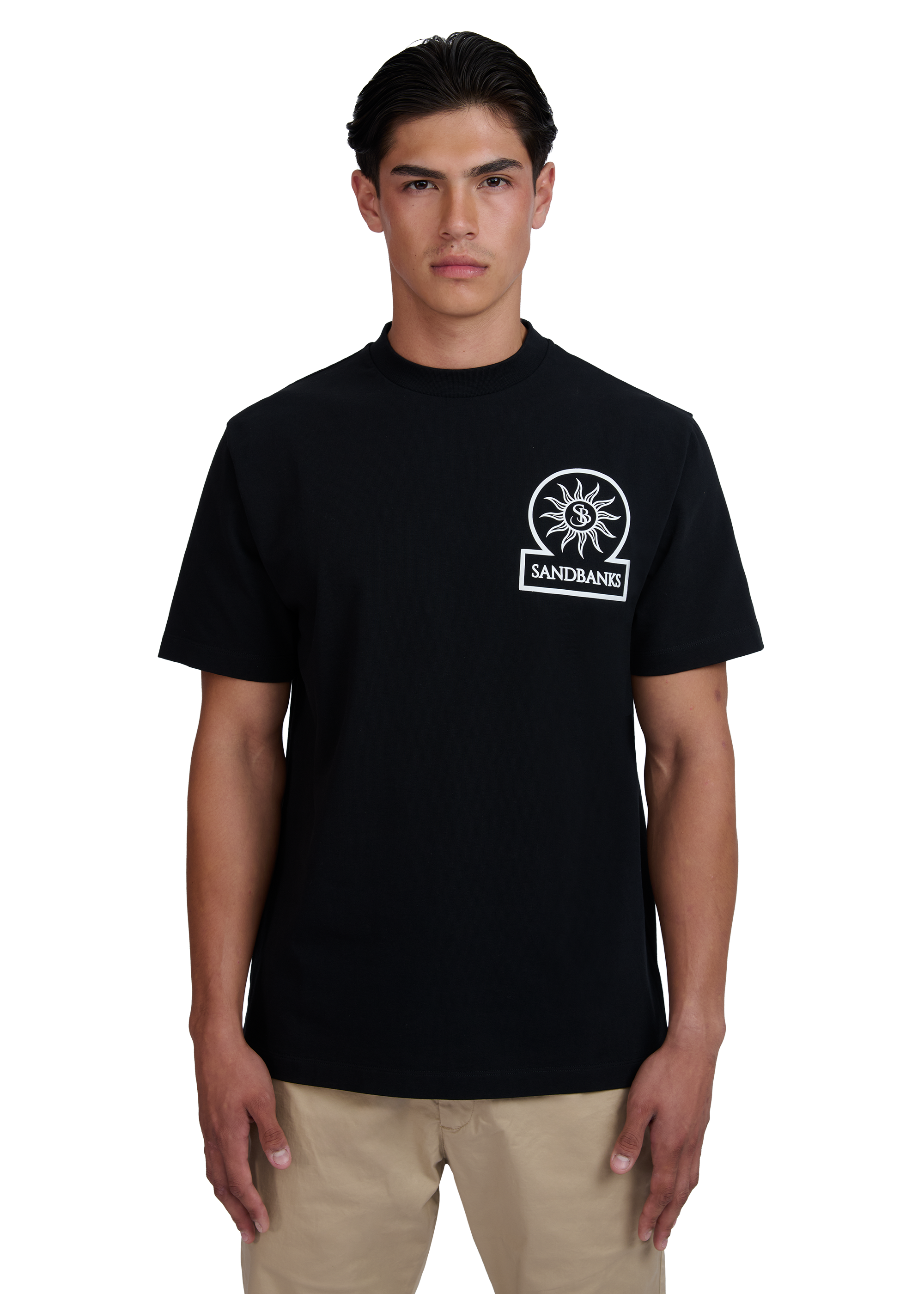 Sandbanks relaxed 3D silicone badge logo t-shirt, made from 100% organic cotton. This t-shirt features a contrast 3D silicone Sandbanks badge logo and tri-colour back neck binding.