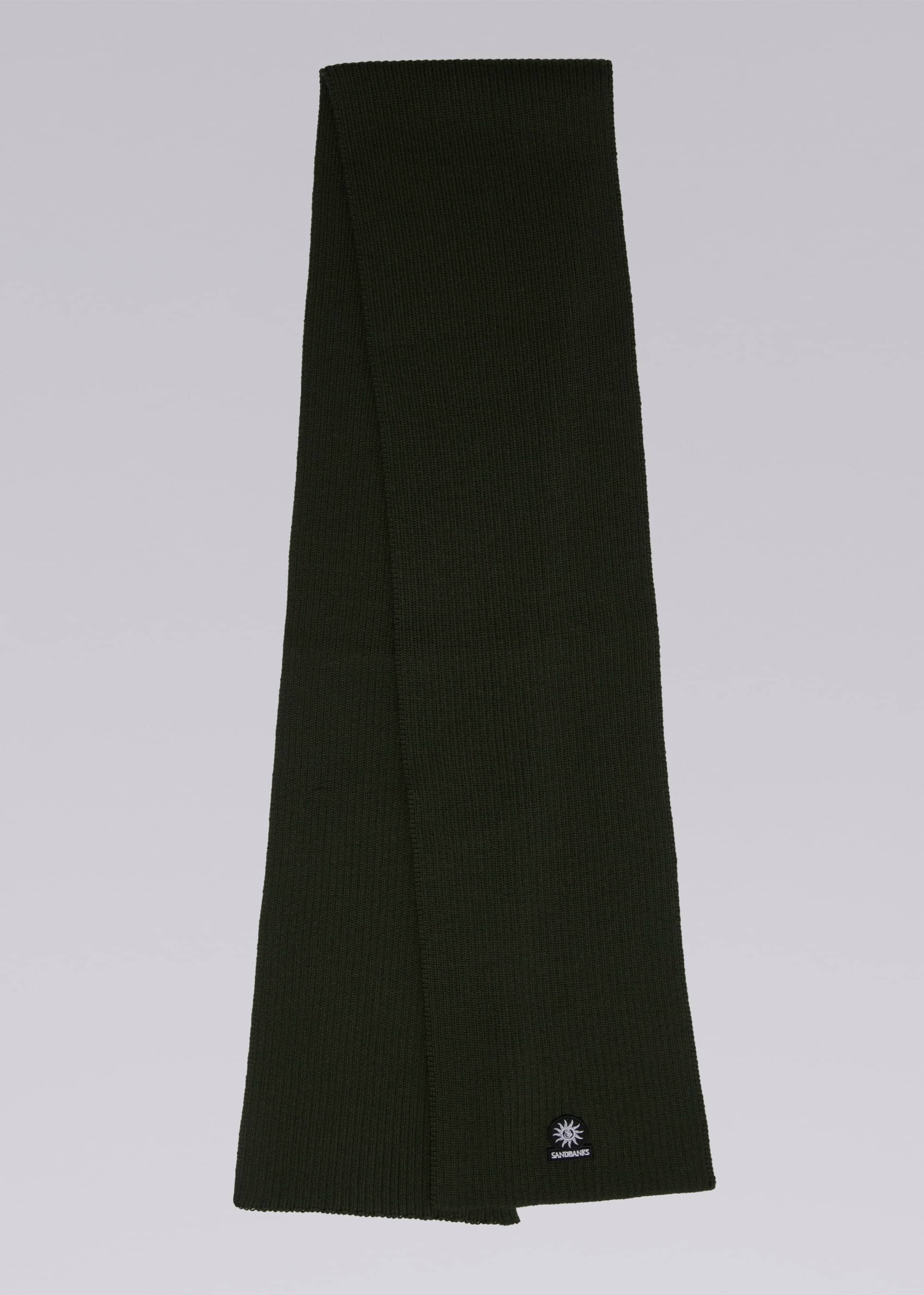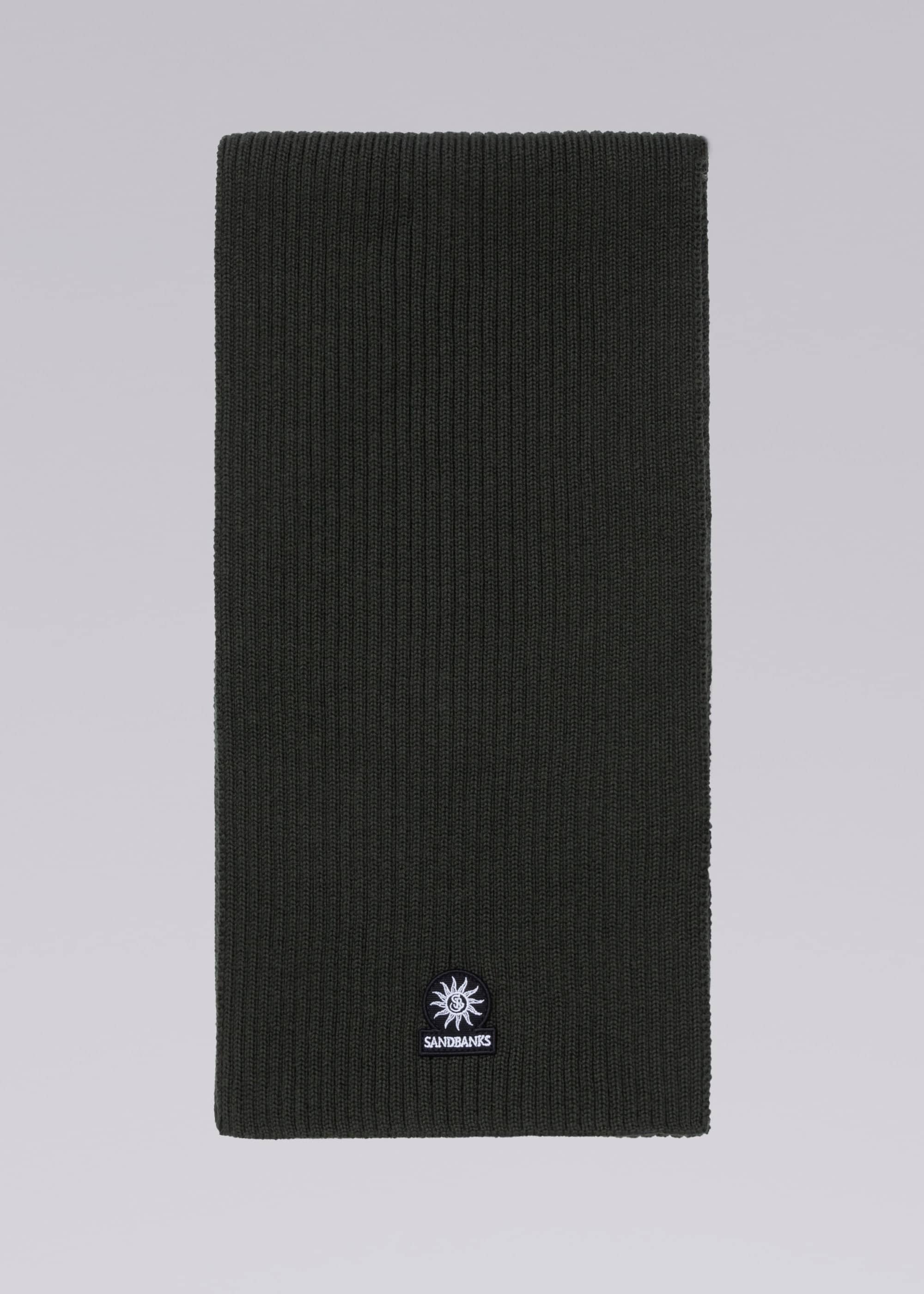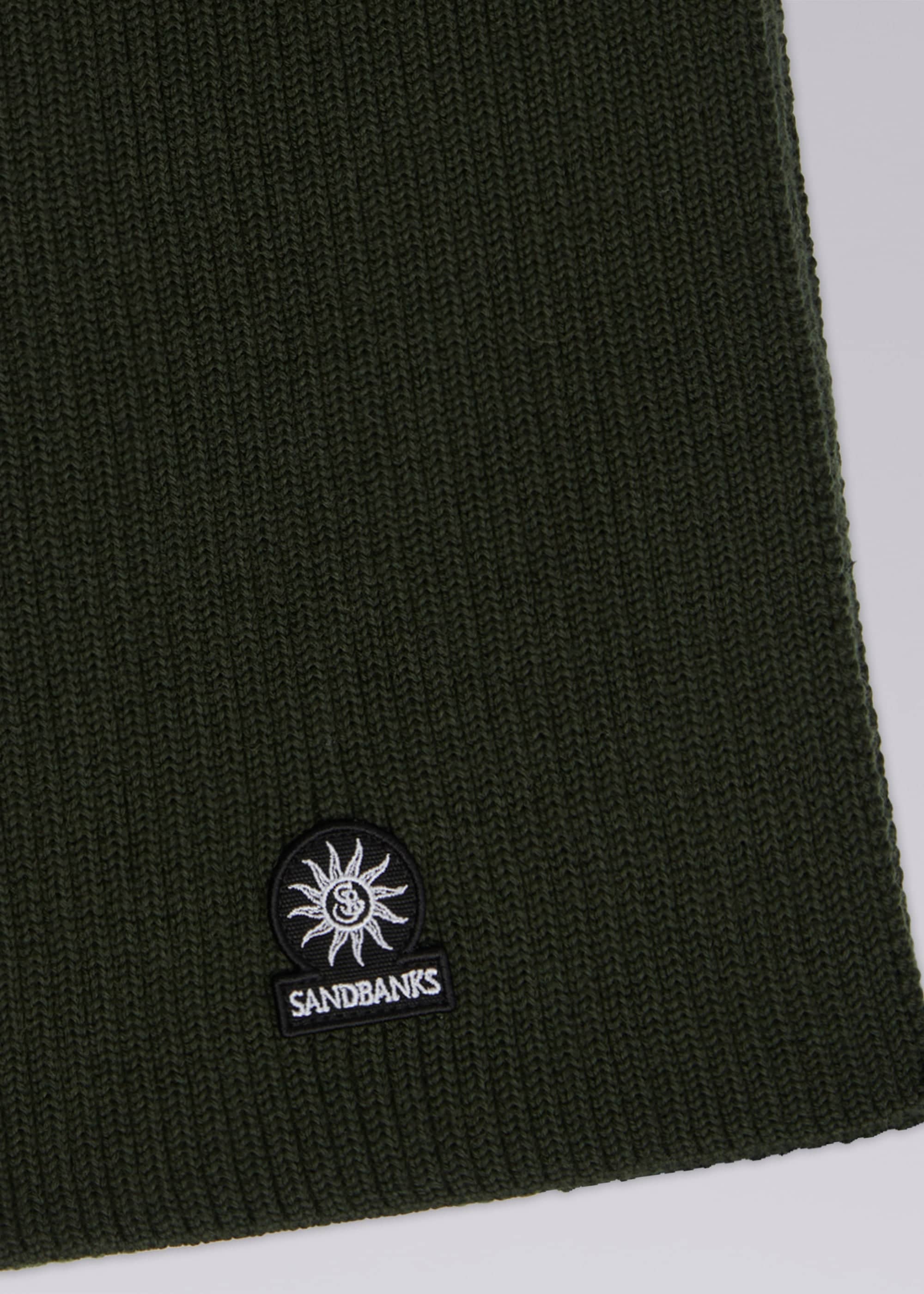 Sandbanks knitted badge logo scarf in khaki, made from merino wool mix.