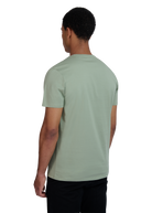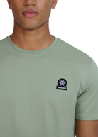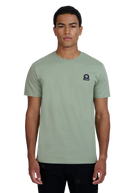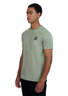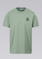 Sandbanks men's badge logo t-shirt in sage, made from mercerised cotton for a silky and luxurious feel. This classic fitting crew neck t-shirt features an embroidered badge logo on the chest and tri-colour back neck binding.