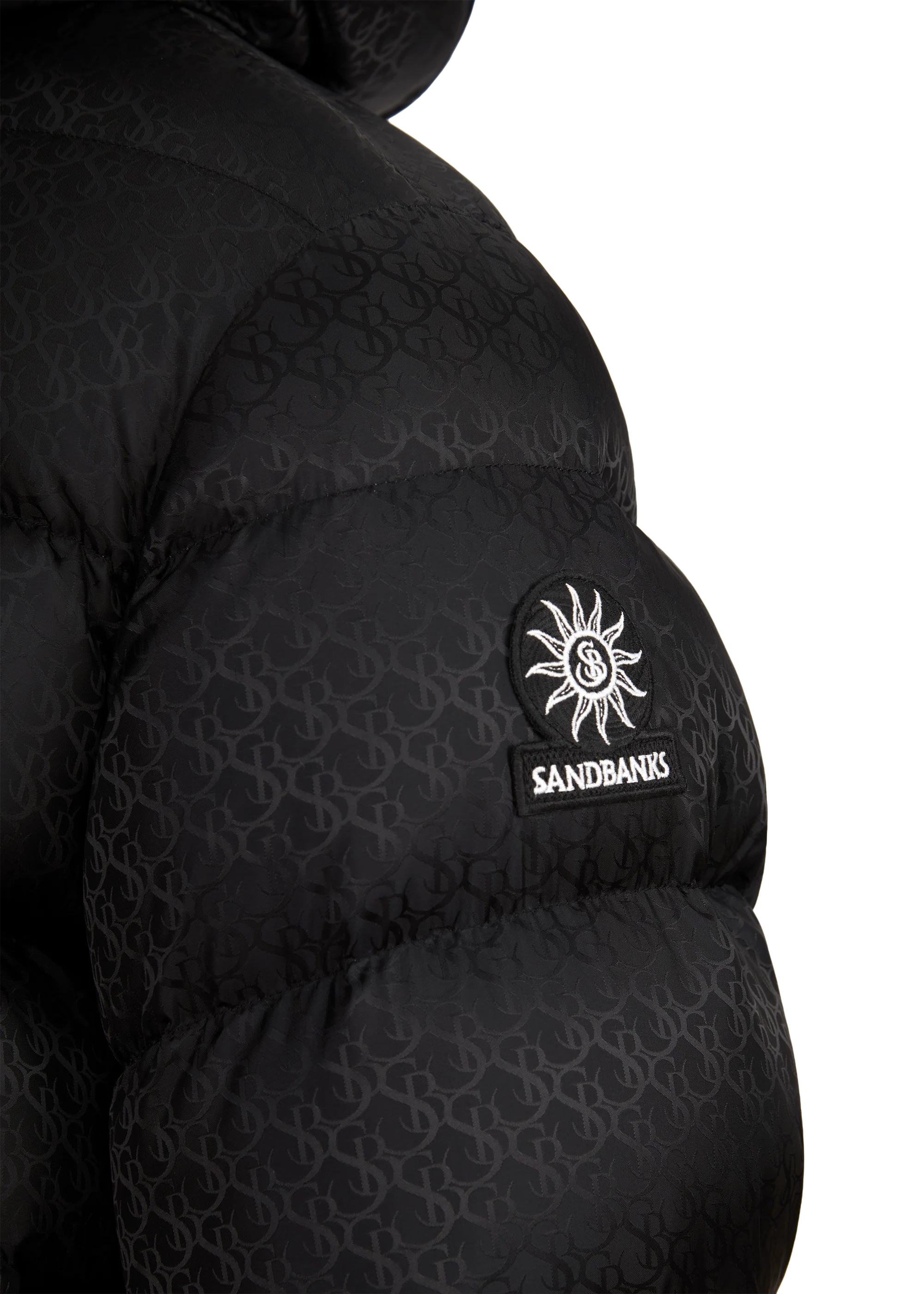 The monogram puffer in black showcases a tonal monogram design that reflects Sandbanks signature identity with a modern, distinctive edge. Expertly crafted from high-quality Italian components and innovative recycled materials, it delivers exceptional warmth, structure, and durability.