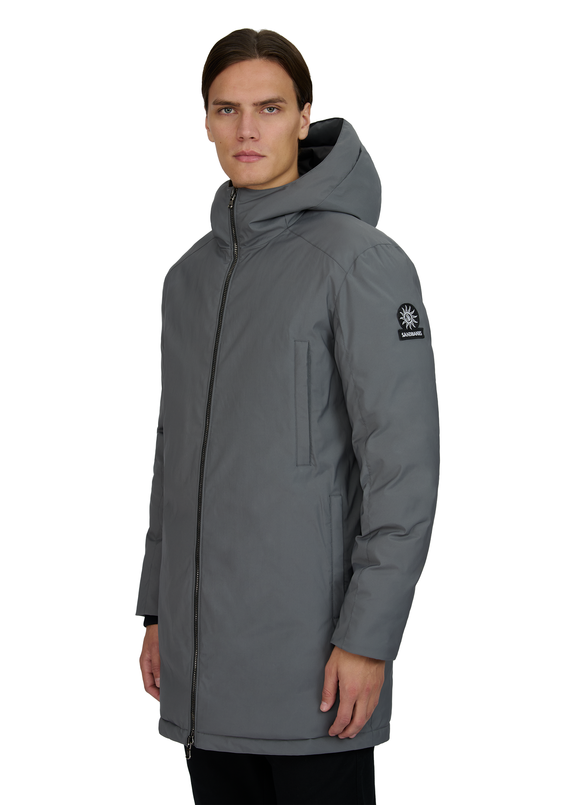 The Sandbanks Canford Terrace Jacket is engineered for performance and comfort in changing conditions. Crafted from a water-resistant shell, it offers protection from light rain and wind while remaining lightweight and easy to layer. The design features an A-line silhouette, two-way metal Lampo zip with metal pullers a high collar with a concealed hood adjuster for added coverage. Eco-down insulation ensures warmth with minimal weight, while the versatile 4 front zip pockets benefit from fleece lining to provide extra comfort. Finished with engraved metal components and an embroidered Sandbanks sleeve badge.